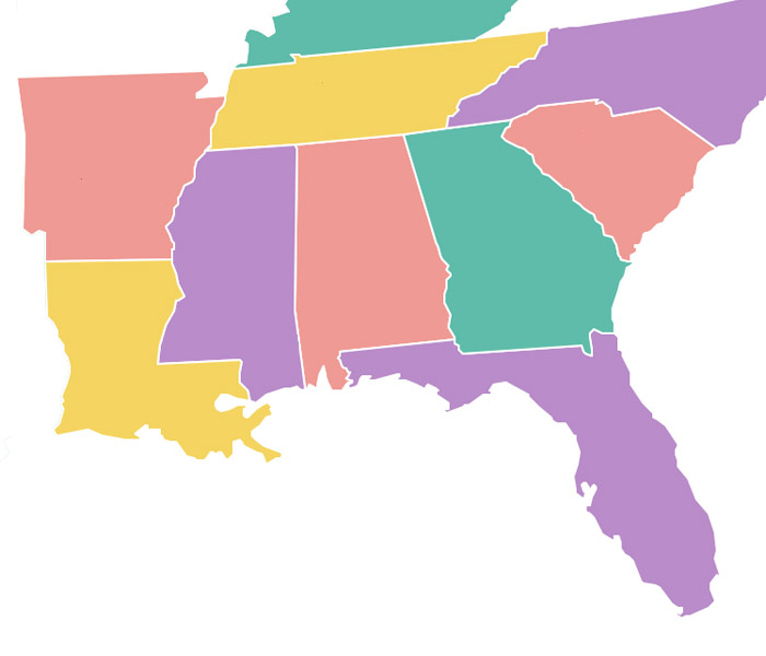 We stock ponds in the following states: Alabama, Arkansas, Florida, Georgia, Kentucky, Louisiana, Mississippi, North Carolina, South Carolina and Tennessee.